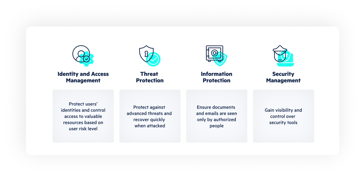The key features of Microsoft 365 security can be categorized into four core segments—identity access and management, threat protection, information protection, and security and risk management.