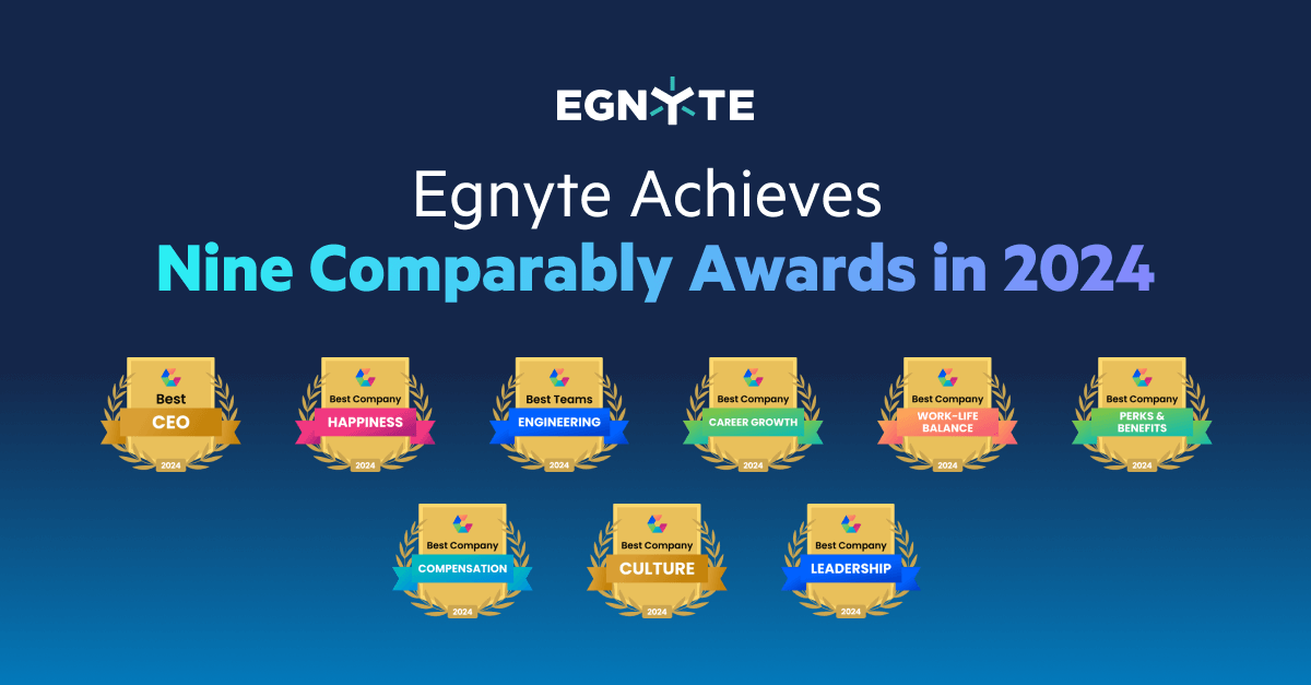 The Egnyte focus on leadership and culture is guided by its core values of Invested Relationships, Fiscal Prudence, and Candid Conversations. Each Comparably Award recognition highlights the impact of prioritizing the employee experience in building a thriving workplace.