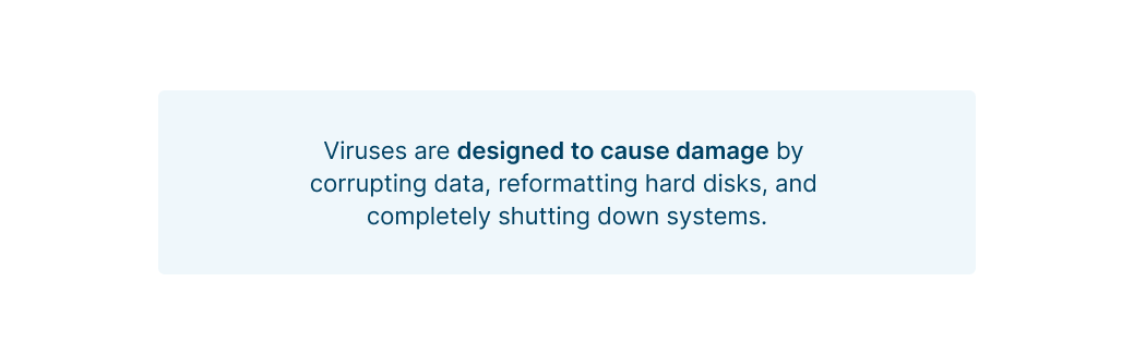 Viruses can also be used to steal information or money, create botnets, and launch other malware.
